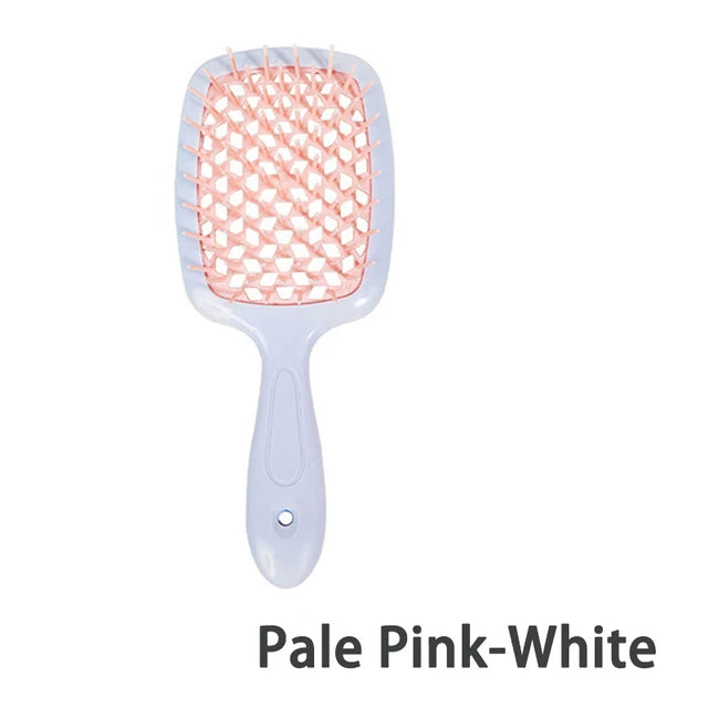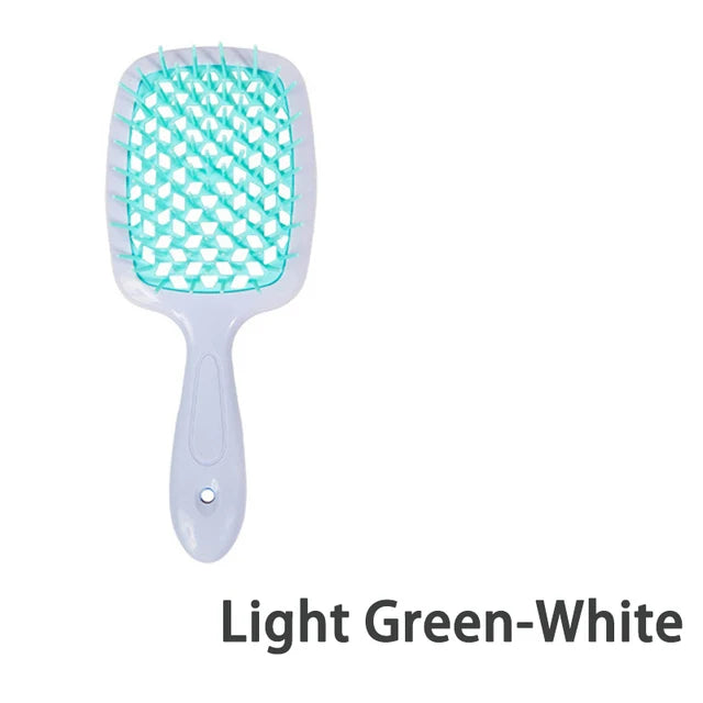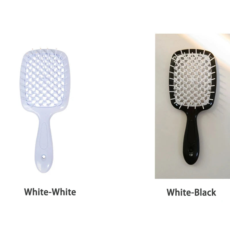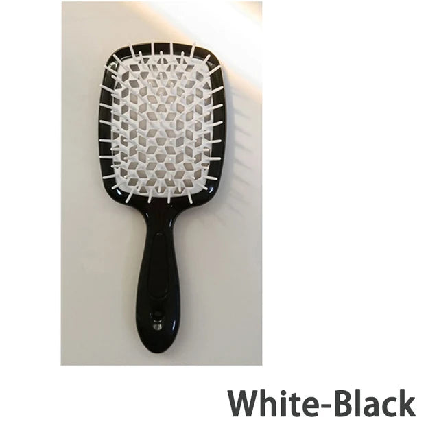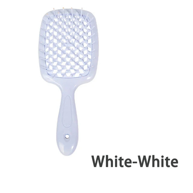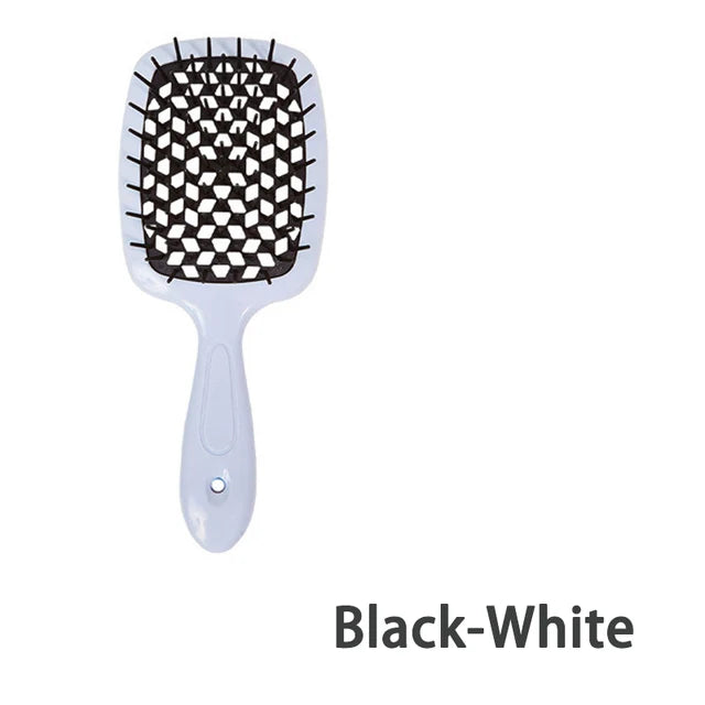 Ontdek de veelzijdigheid van onze multifunctionele haarborstel, ontworpen om aan al je haarbehoeften te voldoen. Of je nu pluizig haar wilt voorkomen of je krullende, dikke of steile haar wilt stylen, deze haarborstel kan het allemaal. Het unieke ontwerp zorgt voor moeiteloos kammen, zowel op nat als droog haar, waardoor klitten gemakkelijk worden verwijderd zonder trekken of breken. Deze allround haarborstel is geschikt voor zowel vrouwen als mannen en is een must-have haaraccessoire voor dagelijks gebruik.